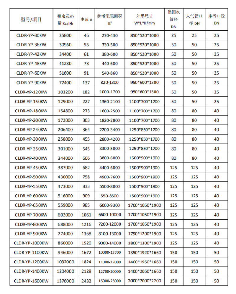 9.工作壓力;常壓(開放式)。如承壓系統,只需在系統上配置板式換熱器即可實現鍋爐的常壓安全運行。